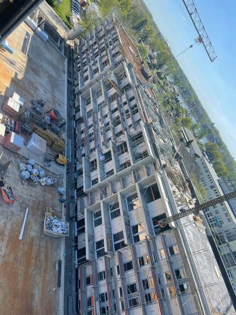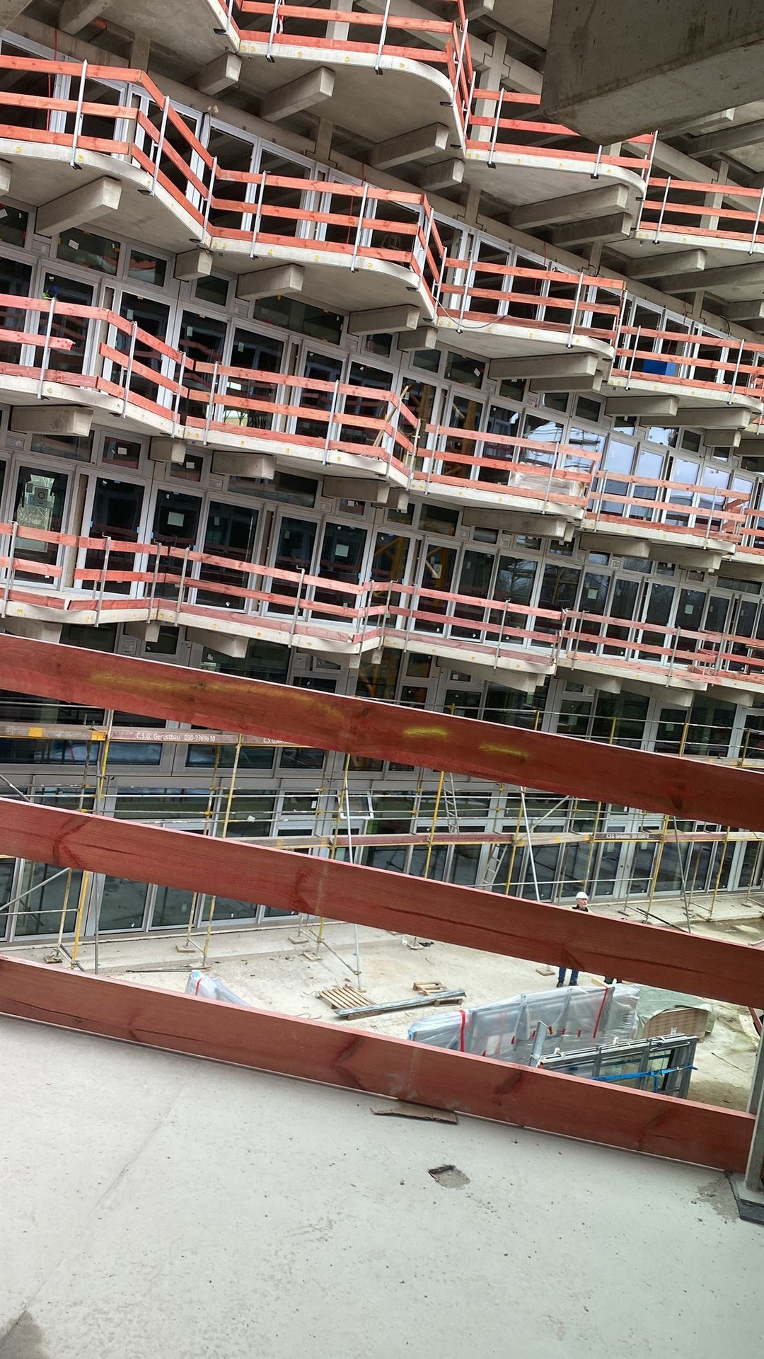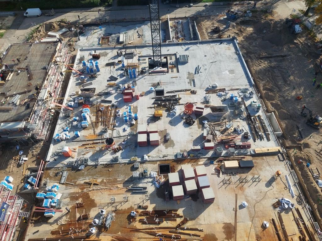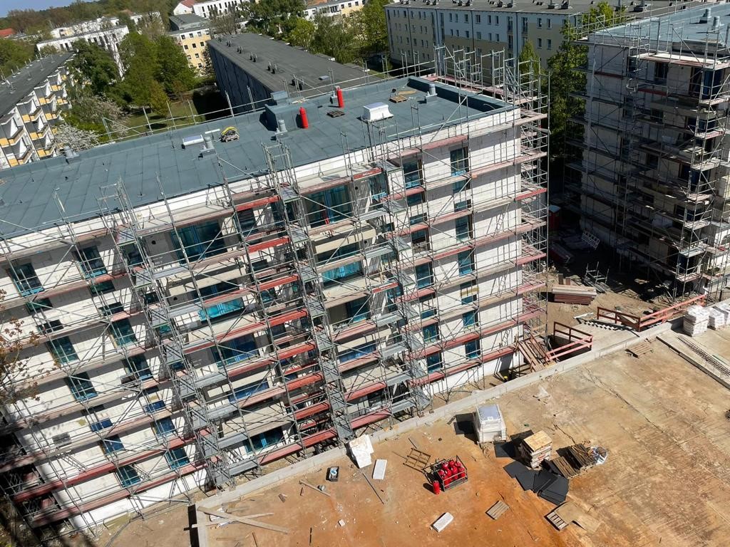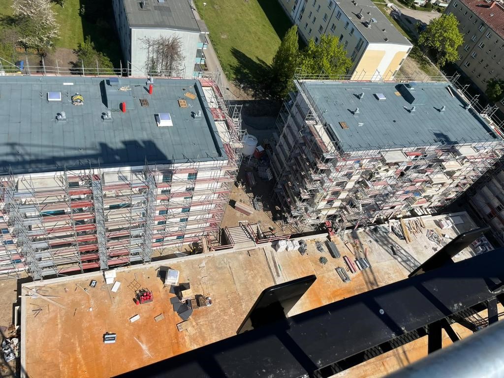 von:- Zwei Wohnhäusern in 6 Obergeschossen (130 Wohnungen).